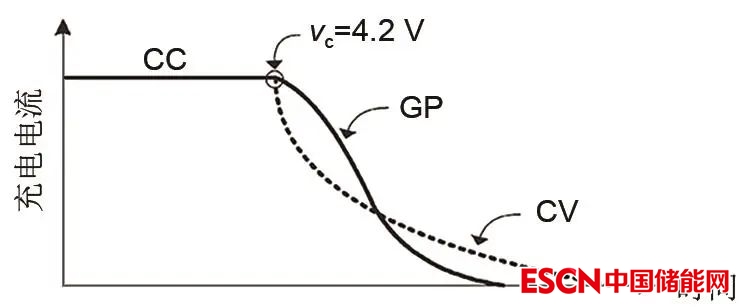如圖1所示,在CC階段增大充電電流的方式是在2005年的時候由Notten等提出,其實現(xiàn)方式是在充電的開始階段用CV充電,也就是整個充電過程變?yōu)镃V-CC-CV。Notten等發(fā)現(xiàn)用非常高的電流在很短的時間內(nèi)給完全耗盡的電池充電然后再切換到標(biāo)準(zhǔn)CC-CV的充電方法,可以縮短充電時間而且不會對鋰離子電池產(chǎn)生任何負(fù)面的影響。實驗結(jié)果表明在給完全耗盡的電池CV時間小于5 min時,電池的壽命衰減同CC-CV充電策略一樣。但是所需的充電時間卻大大縮短。據(jù)作者報道,在開始的5 min內(nèi)可以充電30%的額定容量。不過,這種充電策略顯然只適用于完全耗盡的電池,對于不同的剩余容量,例如10%或者20%,作者并沒有給出相應(yīng)的結(jié)論。而在現(xiàn)實情況下,人們很少會將電池耗盡到接近0%的時候再去充電,尤其在電動汽車上,這樣的情況更為罕見。