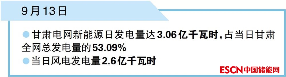 中國儲能網(wǎng)訊:9月13日,甘肅電網(wǎng)新能源日發(fā)電量首次突破3億千瓦時,達(dá)3.06億千瓦時,占當(dāng)日甘肅全網(wǎng)總發(fā)電量的53.09%,其中風(fēng)電發(fā)電量2.6億千瓦時,也創(chuàng)下新高。