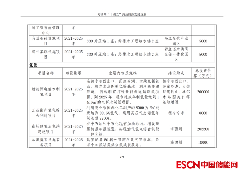 儲能方面:“十四五”期間,電化學(xué)儲能擬重點布局在海西州可再生能源千萬千瓦級外送基地,與光伏、風(fēng)電項目配套建設(shè),擬重點布局在烏圖美仁光伏光熱園區(qū)、大柴旦風(fēng)光儲一體化園區(qū)、茫崖冷湖風(fēng)光氣儲一體化園區(qū)、德令哈西出口光伏光熱園區(qū)、烏蘭光伏產(chǎn)業(yè)園區(qū)、都蘭諾木洪風(fēng)光儲一體化園區(qū)內(nèi),規(guī)劃新建電源側(cè)電化學(xué)儲能規(guī)模為235萬kW/470萬kWh。主要為化學(xué)儲能(鋰電池),配置儲能時長為2h。