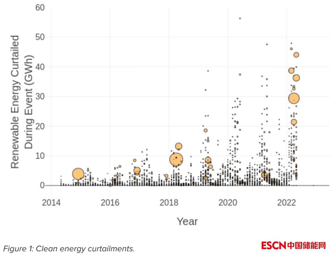 但是,隨著加州可再生能源裝機(jī)容量的增加,棄風(fēng)、棄光的時(shí)間也在增加。自2014年以來,加利福尼亞州棄風(fēng)、棄光的平均持續(xù)時(shí)間從2.5小時(shí)增加到9.5小時(shí)。2022年迄今,加利福尼亞州損失了1860吉瓦時(shí)的風(fēng)能和太陽能發(fā)電量,這足以為超過20萬戶家庭提供一年的電力。