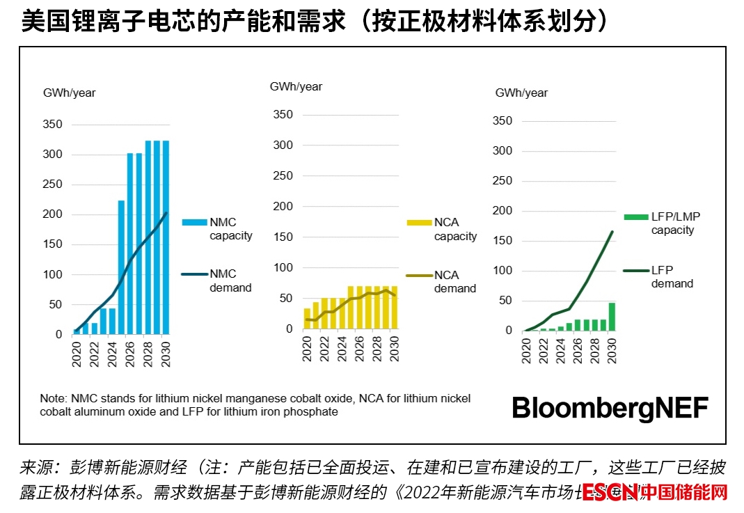 根據(jù)如今的已投運(yùn)、在建和已宣布的產(chǎn)能,與預(yù)期需求相比,美國(guó)2030年鎳基電池將面臨供應(yīng)過(guò)剩問(wèn)題,而磷酸鐵鋰電池將面臨供應(yīng)短缺問(wèn)題。