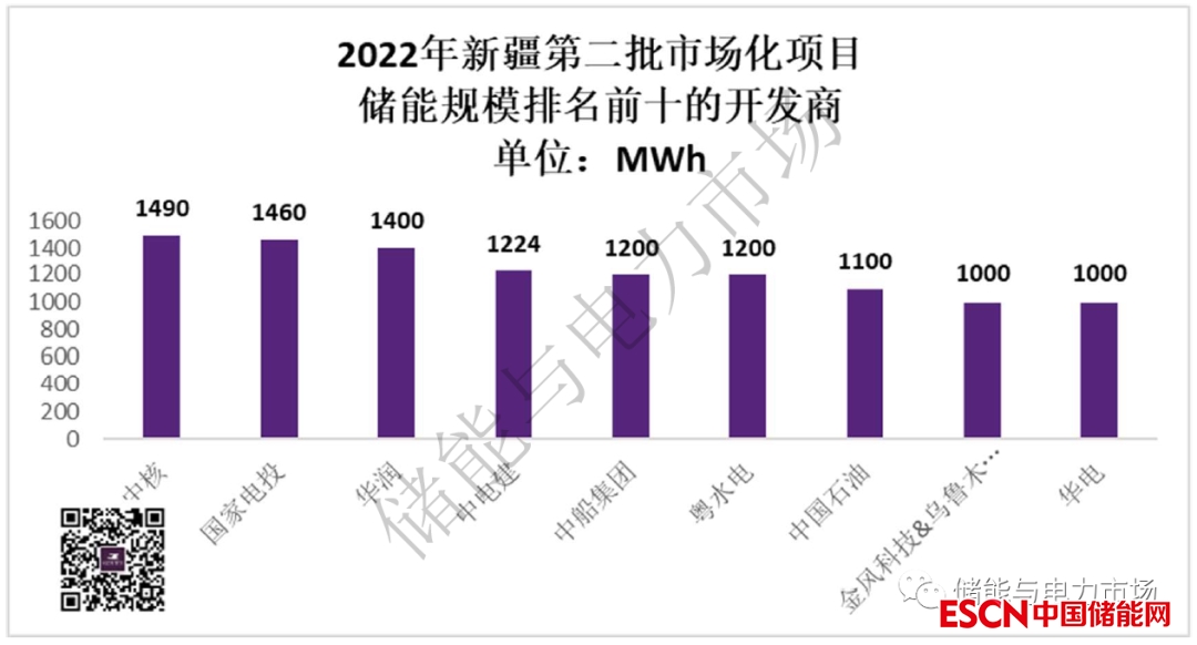 第二批市場(chǎng)化并網(wǎng)項(xiàng)目中,央企配置大量?jī)?chǔ)能,超過(guò)1000MWh的企業(yè)就達(dá)到了9家,如下圖所示。