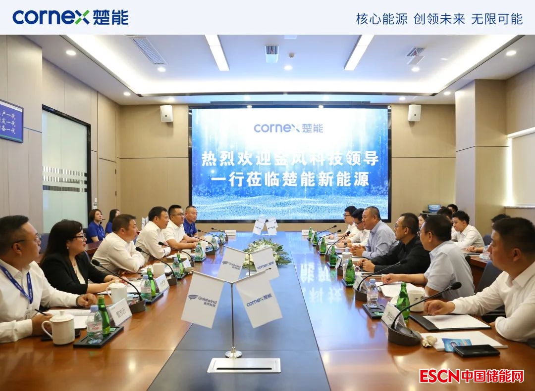 中國儲能網(wǎng)訊:楚能新能源股份有限公司與金風(fēng)科技股份有限公司簽訂戰(zhàn)略合作協(xié)議。9月27日,金風(fēng)科技執(zhí)行董事、執(zhí)行副總裁王海波攜綜合能源事業(yè)部總經(jīng)理胡江,天皓新能源有限公司董事張鵬,天潤新能湖北分公司總經(jīng)理李嘉誠一行到訪楚能新能源武漢江夏基地。楚能新能源董事長代德明,總裁黃鋒親自接見并帶領(lǐng)王海波總裁一行參觀研發(fā)中心,測試中心,量產(chǎn)線。王海波總裁對楚能的研發(fā)能力、產(chǎn)線建設(shè)、項目進度給予了充分的贊揚與肯定。雙方在會議中達成共識,在湖北省新能源開發(fā)領(lǐng)域攜手共進,未來兩年內(nèi)楚能將為金風(fēng)科技提供2GWh儲能電池。