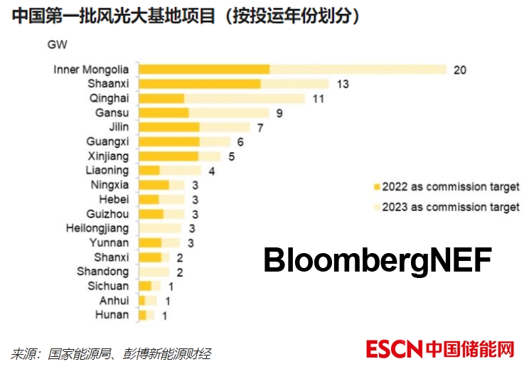 第一批大型風(fēng)電光伏基地項目2022年新增裝機投運目標