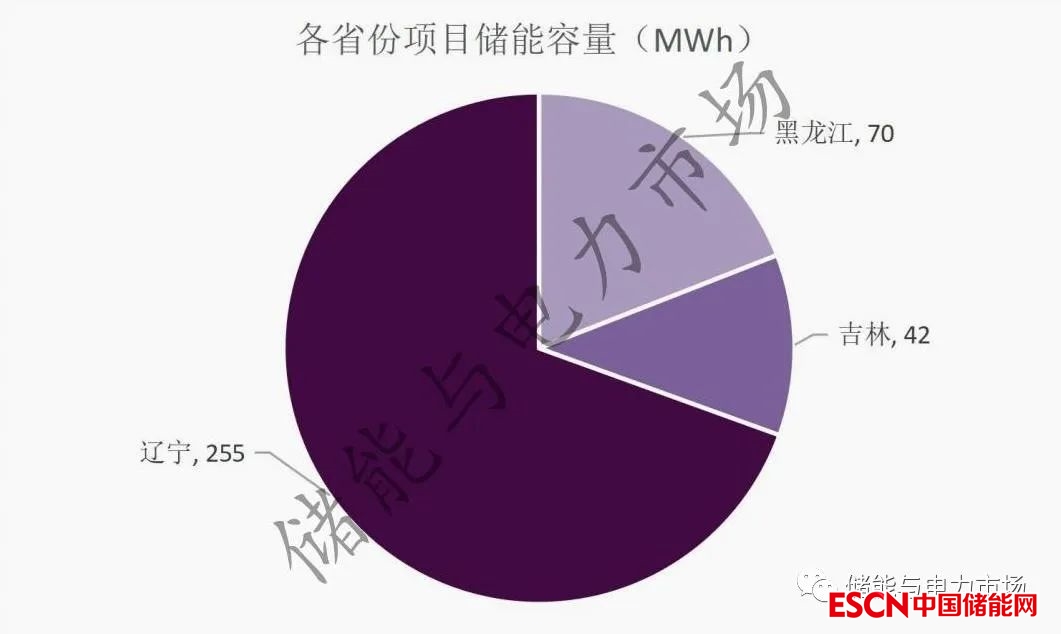 從項目所在省份來看,遼寧省項目規(guī)模最大,共計7個項目,儲能規(guī)模達132.5MW/255MWh。