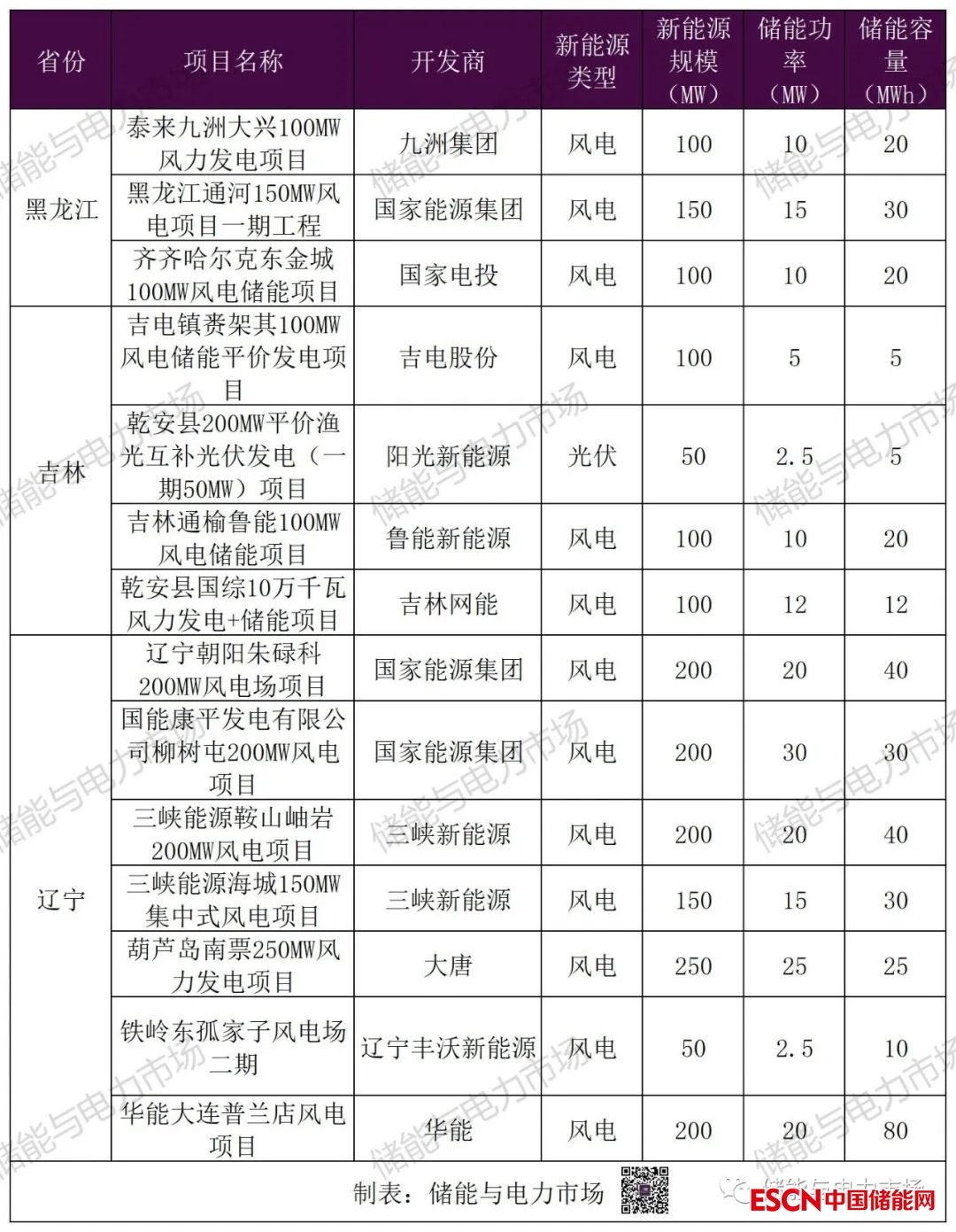 東三省新能源配儲項目一覽表