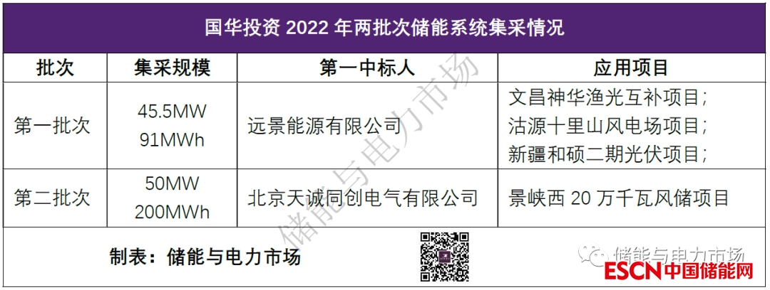 至此,國華投資本年度已完成了兩批次共計95.5MW/291MWh的儲能系統(tǒng)集采,用于新疆、海南、河北等地的四個新能源儲能項目。兩批次的儲能系統(tǒng)訂單被遠景和金風(fēng)旗下的天誠同創(chuàng)所瓜分。