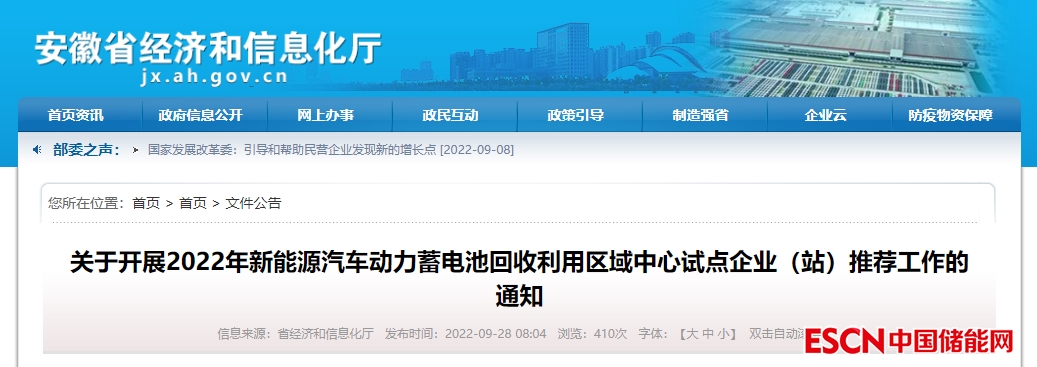 中國儲能網(wǎng)訊:日前,我省啟動2022年新能源汽車動力蓄電池回收利用區(qū)域中心試點企業(yè)(站)推薦工作。