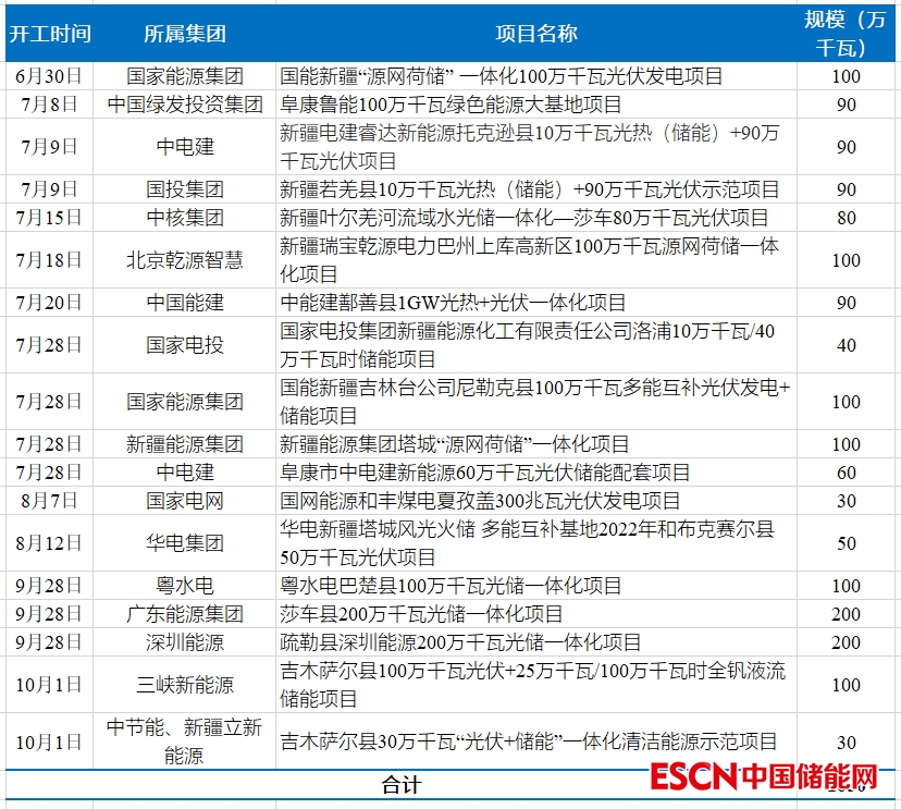 據(jù)不完全統(tǒng)計(jì),7月初以來,新疆開工的光伏項(xiàng)目超過了16.5GW,具體如下表所示。