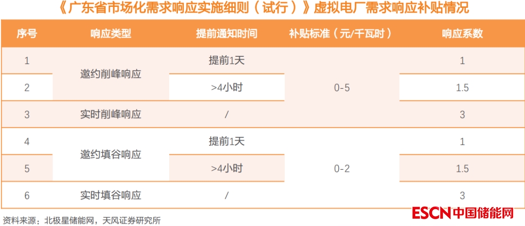 運(yùn)營(yíng)分成市場(chǎng)測(cè)算方式:以2021年2月《廣州市虛擬電廠實(shí)施細(xì)則(征求意見稿)》為例①響應(yīng)電量目標(biāo):目標(biāo)是引導(dǎo)用戶通過開展需求響應(yīng),實(shí)現(xiàn)削峰填谷,逐步形成約占我市統(tǒng)調(diào)最高負(fù)荷3%左右的需求響應(yīng)能力。②響應(yīng)補(bǔ)貼:電力用戶、負(fù)荷聚合商應(yīng)可申請(qǐng)參與需求響應(yīng),需求響應(yīng)分為邀約、實(shí)時(shí)兩種類型,補(bǔ)貼費(fèi)用=有效響應(yīng)電量×補(bǔ)貼標(biāo)準(zhǔn)×響應(yīng)系數(shù),削峰補(bǔ)貼最高5元/度,填谷補(bǔ)貼最高2元/度。