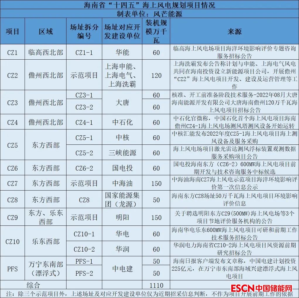 風芒能源根據(jù)招采信息判斷,目前,海南海上風電已有11.1GW場址對應(yīng)開發(fā)建設(shè)單位浮出水面。