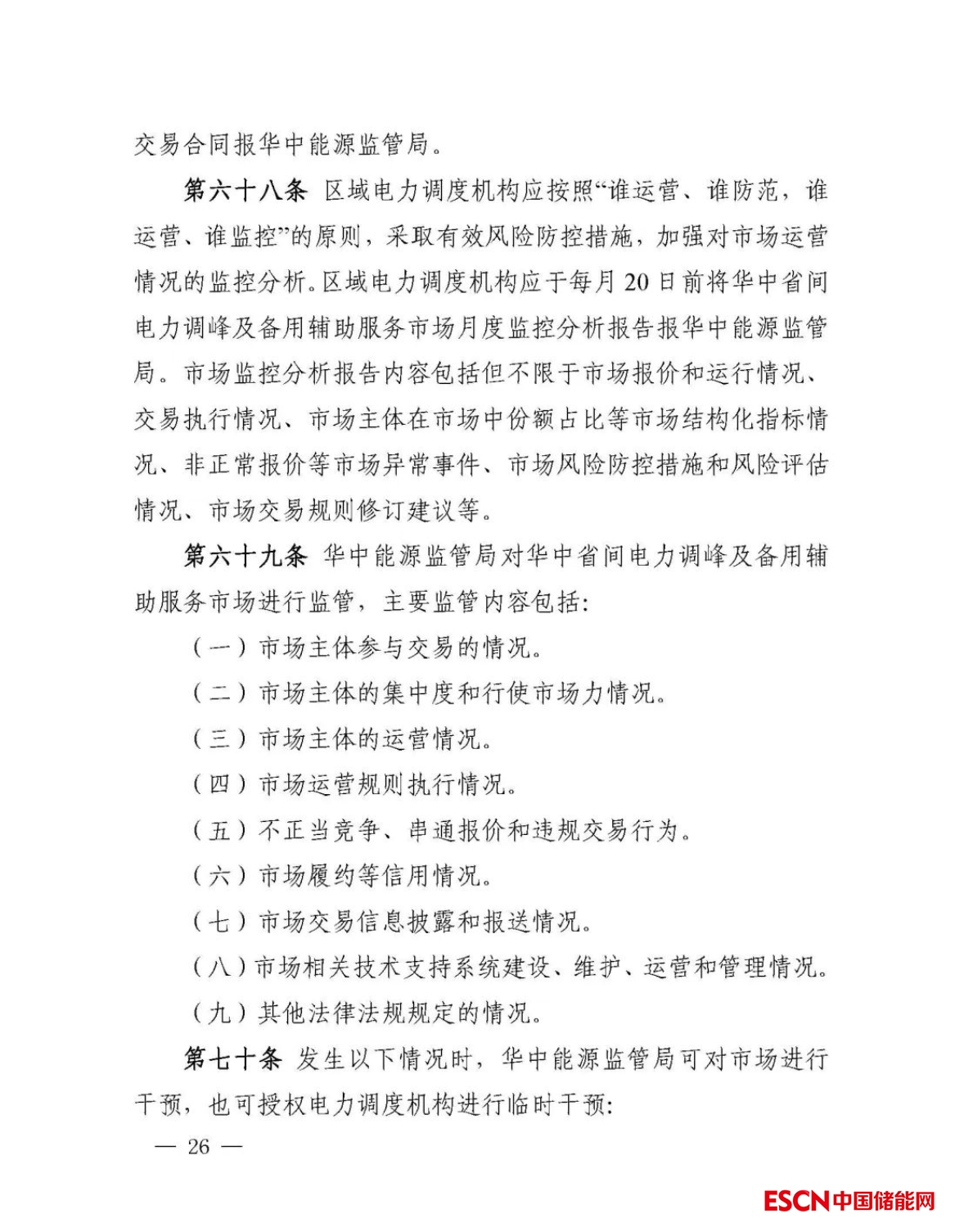 為貫徹落實《國家發(fā)展改革委國家能源局關(guān)于加快建設(shè)全國統(tǒng)一電力市場體系的指導(dǎo)意見》(發(fā)改體改〔2022〕118號)等文件精神,完善華中區(qū)域電力調(diào)峰、備用資源跨省共享和調(diào)用機制,我局會同國家能源局河南、湖南監(jiān)管辦組織對《華中電力調(diào)峰輔助服務(wù)市場運營規(guī)則》(華中監(jiān)能市場〔2019〕248號)進行了修訂,形成了《華中省間電力調(diào)峰及備用輔助服務(wù)市場運營規(guī)則》及配套分攤細則。
