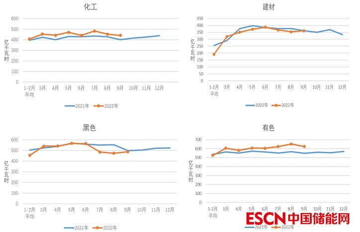 圖4 2021、2022年重點行業(yè)分月用電量情況
