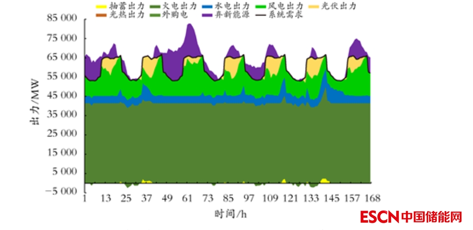 圖9 甘肅新能源發(fā)電大出力典型周各類電源工作位置