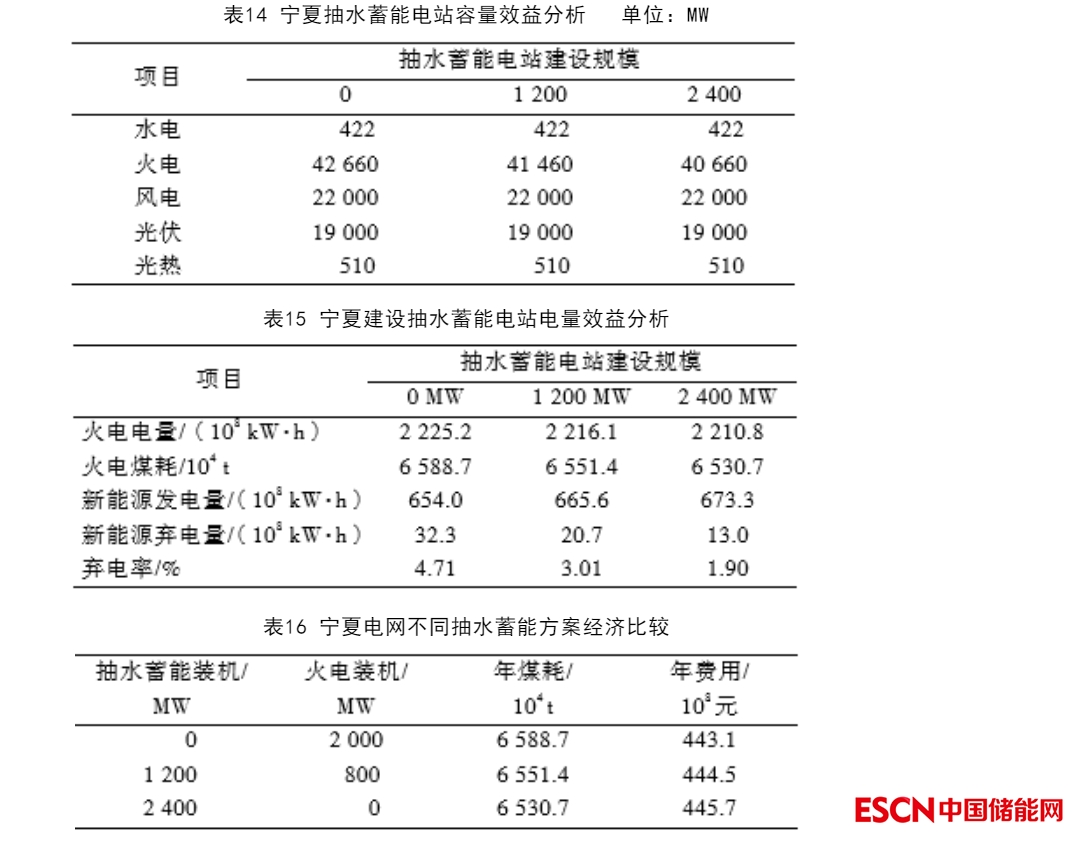 從容量效益計(jì)算結(jié)果來看,寧夏1 200 MW抽水蓄能電站可減少火電裝機(jī)規(guī)模1 200 MW,抽水蓄能電站的容量效益1 200 MW,火電裝機(jī)替代率為100%。建設(shè)2 400 MW抽水蓄能電站,可減少火電裝機(jī)2 000 MW,即抽蓄容量效益為2 000 MW,火電裝機(jī)替代率為83.3%。
