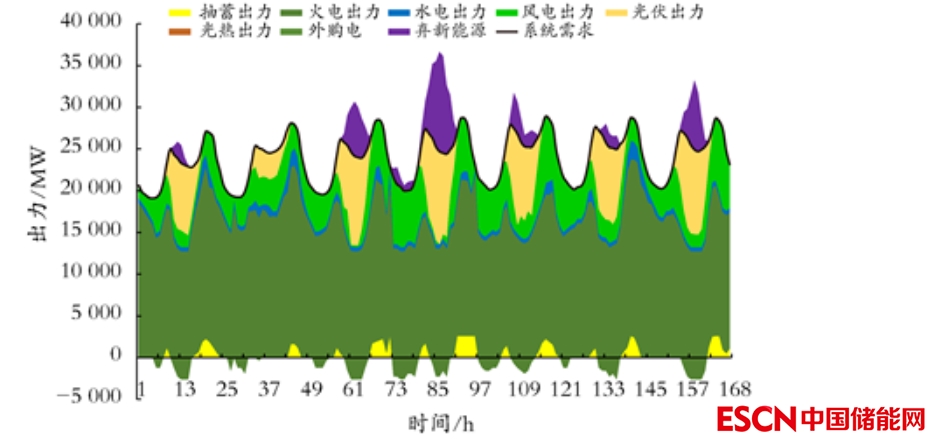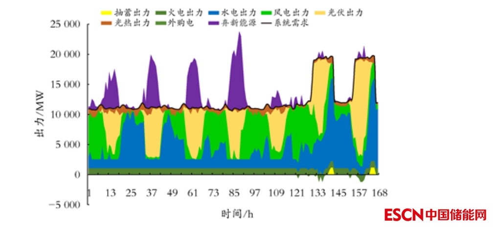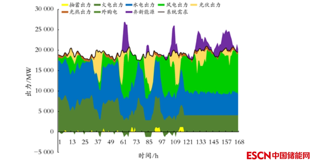 圖10 青海新能源發(fā)電大出力典型周各類電源工作位置