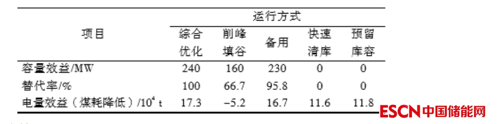 表4 陜西省不同運(yùn)行方式下的容量效益和電量效益