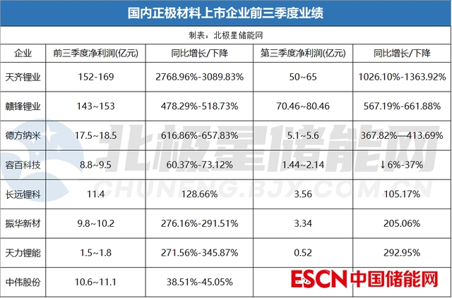 除天齊鋰業(yè)、贛鋒鋰業(yè)之外,德方納米、振華新材、天力鋰能、長(zhǎng)遠(yuǎn)鋰科等公司前三季度凈利潤(rùn)與增長(zhǎng)同比超過(guò)100%。