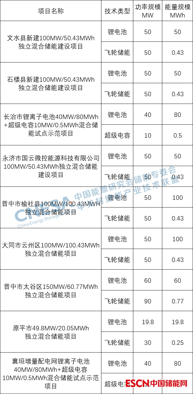據(jù)了解,2022年,山西省已審批通過9個(gè)混合儲(chǔ)能項(xiàng)目,技術(shù)類型主要是鋰電池配合飛輪儲(chǔ)能系統(tǒng)和超級電容,總規(guī)模達(dá):799.8MW/593.97MWh。