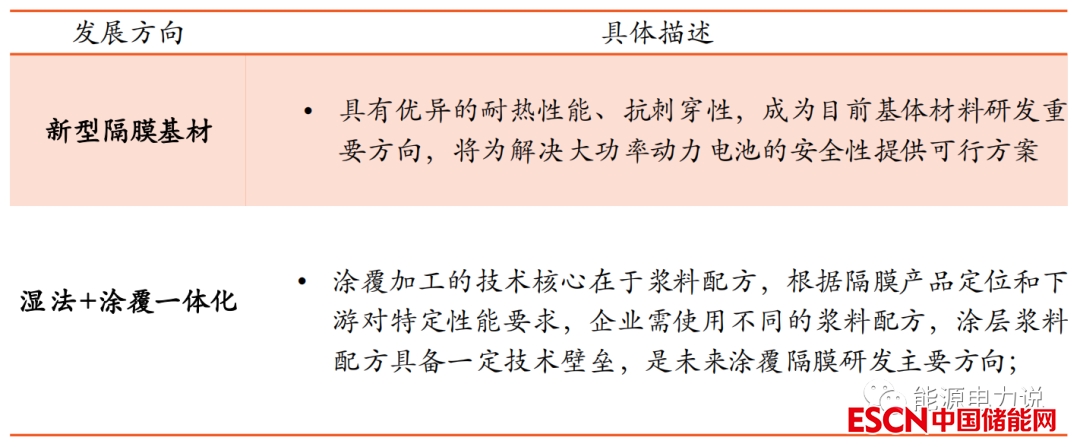 隔膜因其基材、涂布漿料及工藝難度較高而具有高進(jìn)入壁壘,其難度主要來(lái)自原料選擇和配比、隔膜設(shè)備及精確控制技術(shù),其中新型隔膜基材和涂覆隔膜成為重點(diǎn)研發(fā)方向。