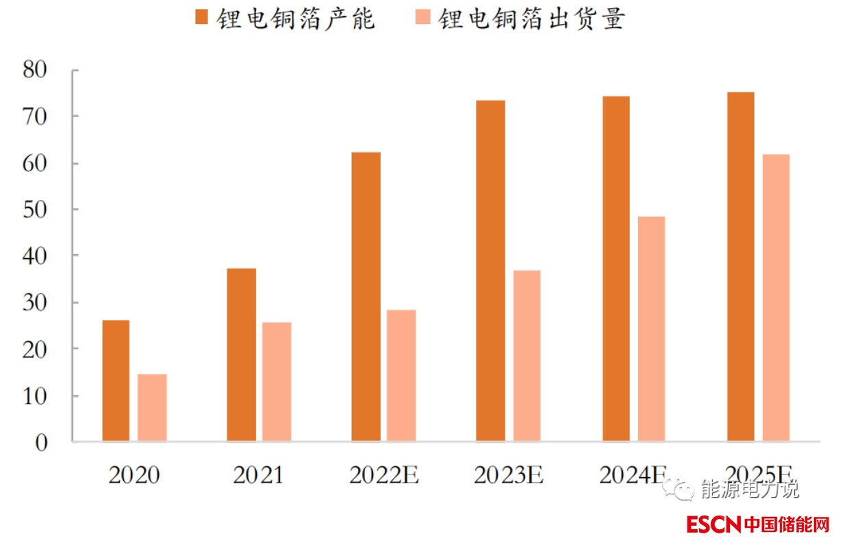 2020-2025中國(guó)鋰電銅箔出貨量及預(yù)測(cè)(萬(wàn)噸)