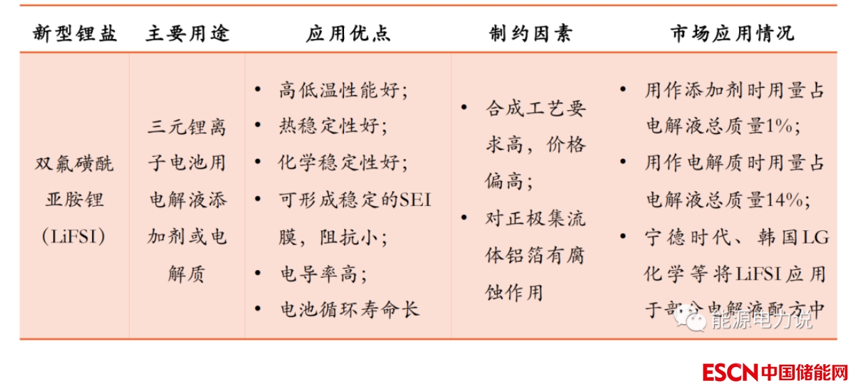 新型鋰鹽未來(lái)具有穩(wěn)步提升可能性。目前應(yīng)用較多的新型鋰鹽為雙氟磺酰亞胺鋰(LiFSI)。