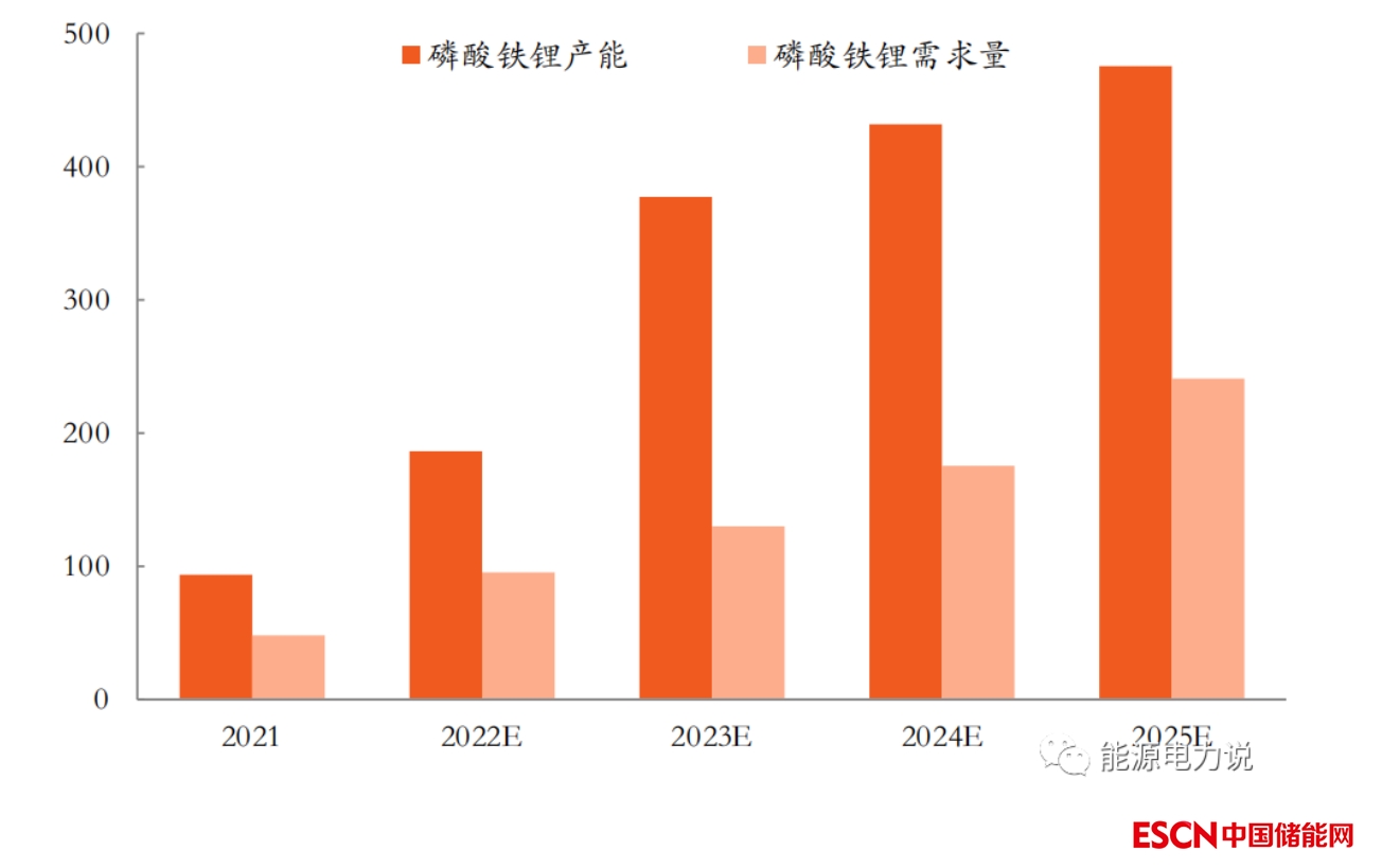 磷酸鐵鋰2021-2022年供應(yīng)偏緊,產(chǎn)能擴(kuò)張速度加快,2023-2025年存在結(jié)構(gòu)性過(guò)剩風(fēng)險(xiǎn)。預(yù)計(jì)2022年國(guó)內(nèi)磷酸鐵鋰出貨約為95萬(wàn)噸,而年初產(chǎn)能分別為94萬(wàn)噸,產(chǎn)品供給偏緊張。隨著2023年磷酸鐵鋰產(chǎn)能快速釋放,產(chǎn)能存在結(jié)構(gòu)性過(guò)剩風(fēng)險(xiǎn)。
