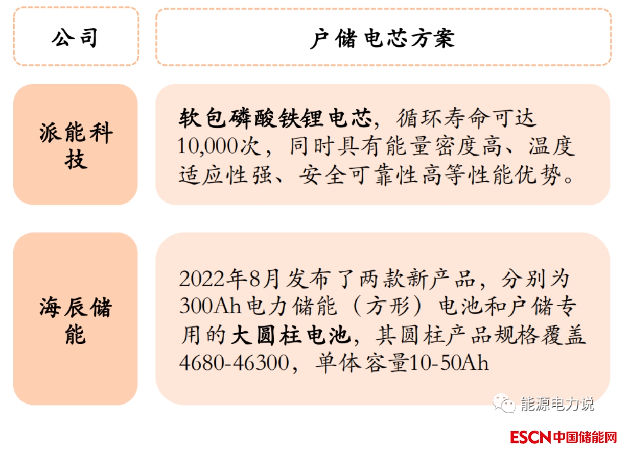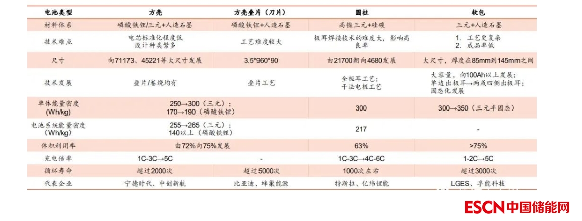 戶用儲(chǔ)能系統(tǒng)規(guī)模在10kWh級(jí)別,大圓柱電池(單體容量10Ah-50Ah),方形(50Ah-300Ah),軟包(30Ah-80Ah)方案均有公司選用,目前戶儲(chǔ)采用的電芯封裝路線并無(wú)定型。
