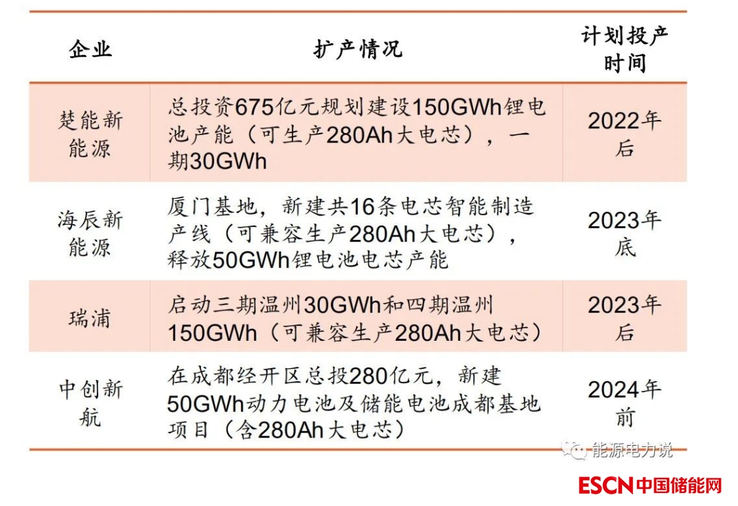 2020年以來(lái)國(guó)內(nèi)280Ah電池產(chǎn)線擴(kuò)張情況(部分)