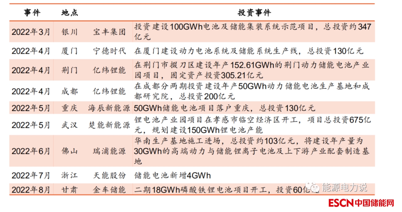 2022年國(guó)內(nèi)主要新建儲(chǔ)能電池項(xiàng)目