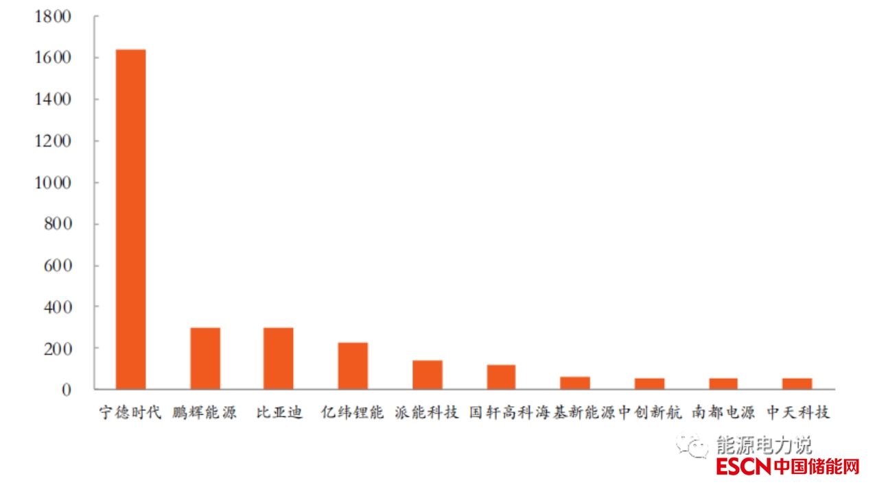 2021年中國(guó)儲(chǔ)能電池企業(yè)全球儲(chǔ)能電池出貨量(MWh)