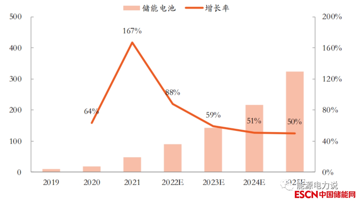 2019-2025年中國(guó)儲(chǔ)能鋰電池出貨量及預(yù)測(cè)(GWh)