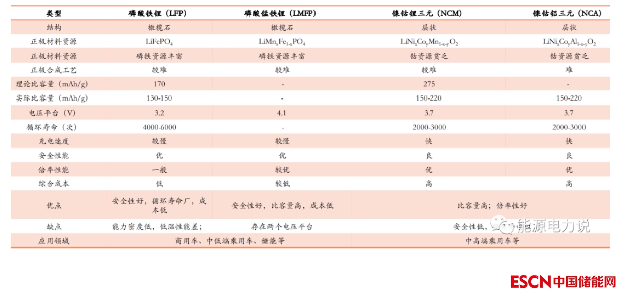 磷酸(錳)鐵鋰電池和三元鋰電池性能對(duì)比