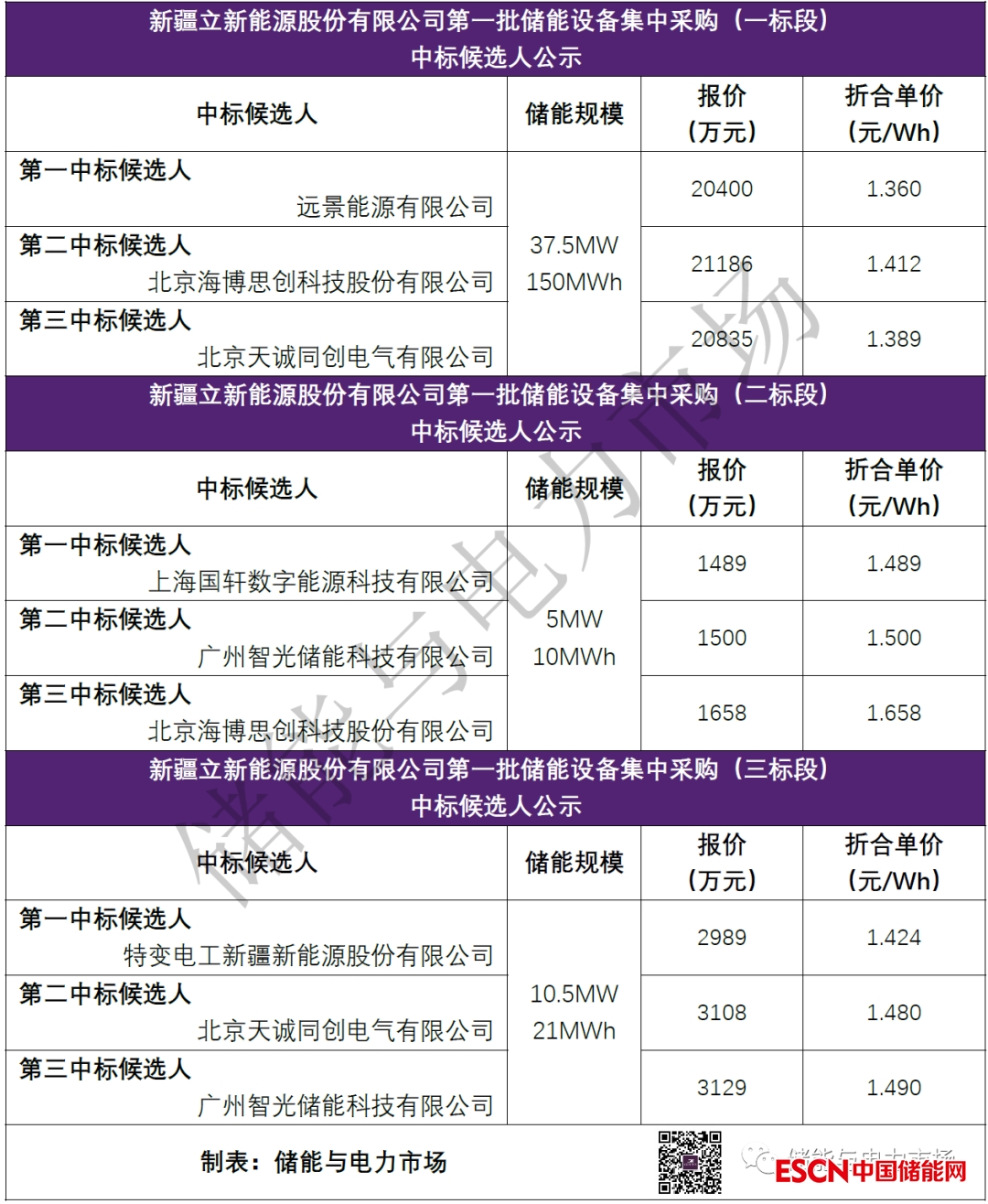 中國儲能網(wǎng)訊:近日《新疆立新能源股份有限公司第一批儲能設備集中采購中標候選人公示》對外發(fā)布。此次招標共分三個標段,儲能容量總計181MWh。其中: