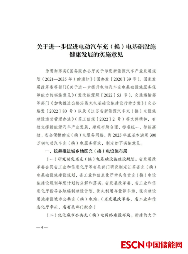 中國(guó)儲(chǔ)能網(wǎng)訊:近日,江蘇省工業(yè)和信息化廳會(huì)同省十三部門聯(lián)合印發(fā)《關(guān)于進(jìn)一步促進(jìn)電動(dòng)汽車充(換)電基礎(chǔ)設(shè)施健康發(fā)展的實(shí)施意見》。意見提出:統(tǒng)籌推進(jìn)城鄉(xiāng)地區(qū)充(換)電設(shè)施布局。優(yōu)化城市公共充(換)電網(wǎng)絡(luò)建設(shè)布局。
