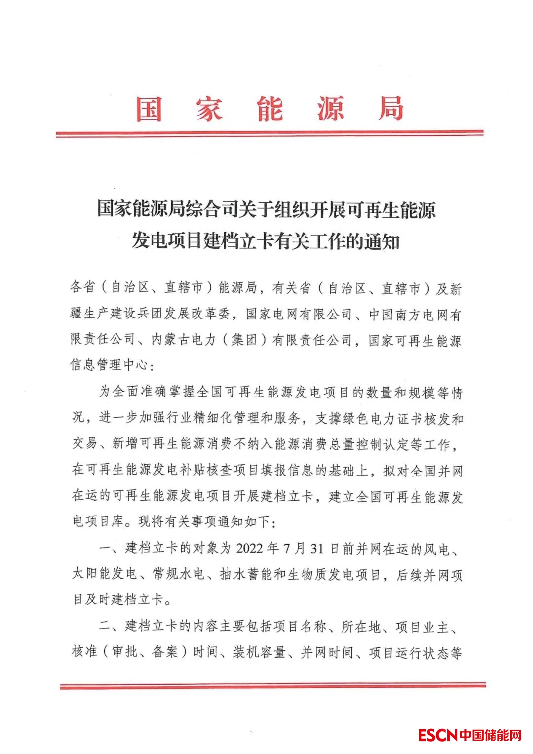 中國儲能網(wǎng)訊:10月21日,國家能源局發(fā)布《關(guān)于組織開展可再生能源發(fā)電項目建檔立卡有關(guān)工作的通知》。
