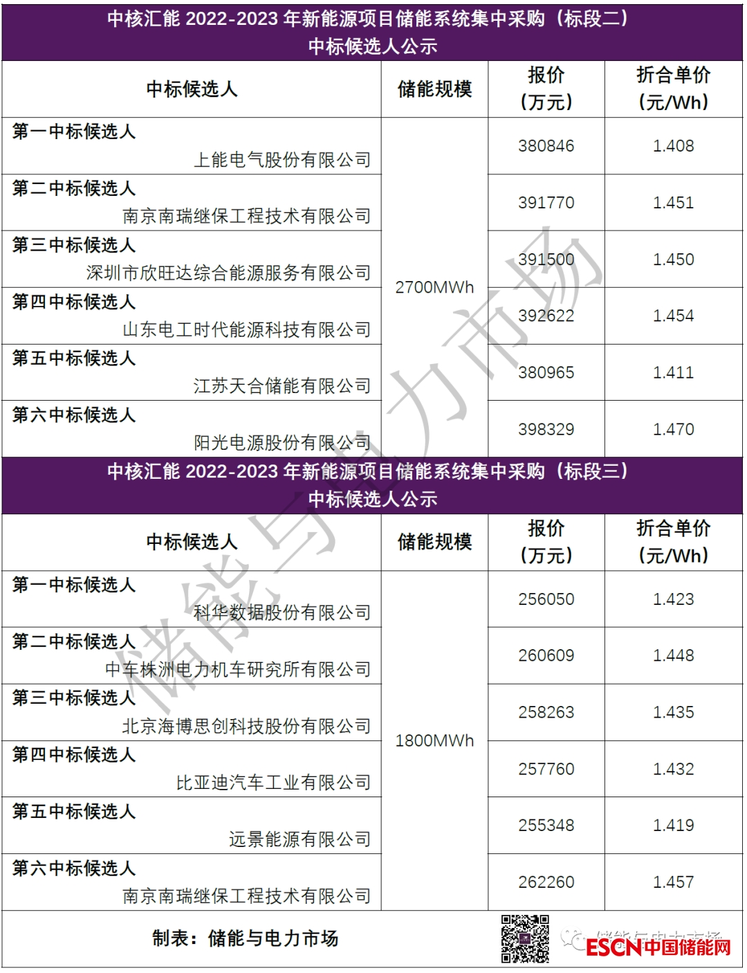 中國儲能網(wǎng)訊:10月27日,中核匯能2022-2023年新能源項目儲能系統(tǒng)集中采購(標(biāo)段二、標(biāo)段三)的中標(biāo)結(jié)果正式對外發(fā)布。其中: