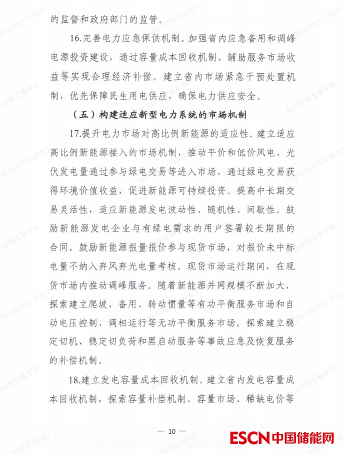文件提出,建立省內(nèi)發(fā)電容量成本回收機制,探索容量補償機制、容量市場、稀缺電價等多種方式,保障電源固定成本回收和長期電力供應(yīng)安全。通過輔助服務(wù)市場收益,引導(dǎo)抽水蓄能、電化學(xué)儲能、物理儲能、儲熱等調(diào)節(jié)電源投資建設(shè)。
