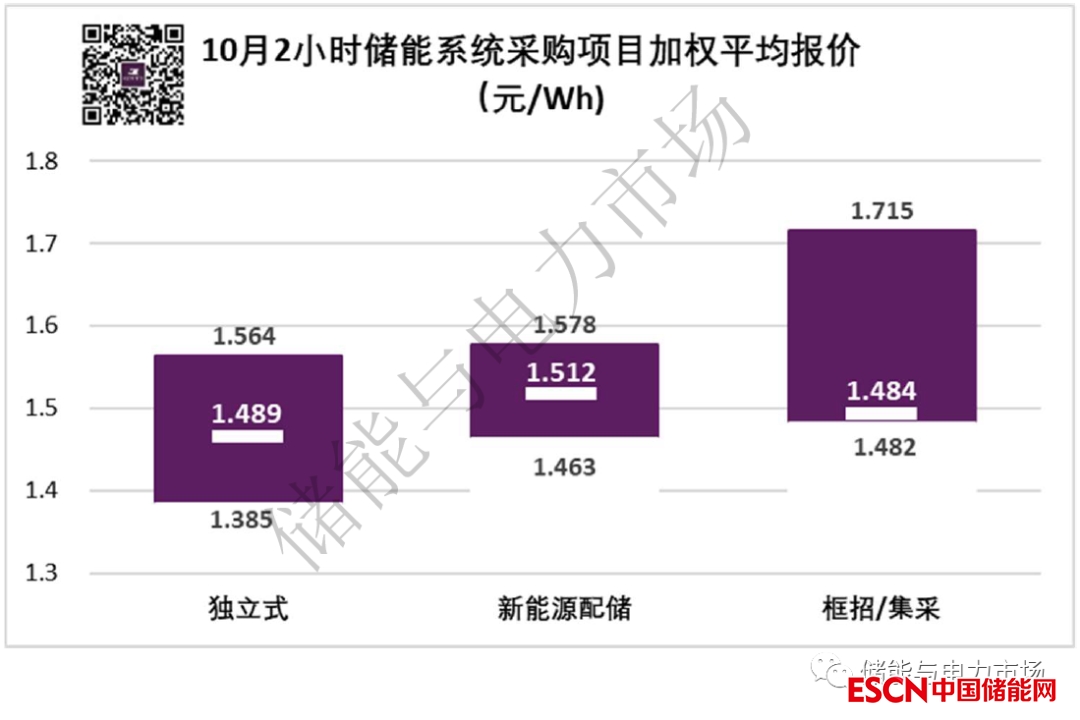 集采/框招的儲(chǔ)能系統(tǒng)采購(gòu)加權(quán)平均報(bào)價(jià)最低,為1.484元/Wh。