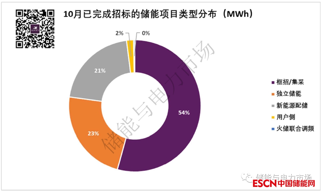 10月共完成了16個(gè)EPC/PC總承包招標(biāo)和19個(gè)儲(chǔ)能系統(tǒng)采購(gòu),此外還有2個(gè)光伏+儲(chǔ)能EPC總承包工程、1個(gè)電池單體采購(gòu)、2個(gè)儲(chǔ)能電池預(yù)制艙采購(gòu)。