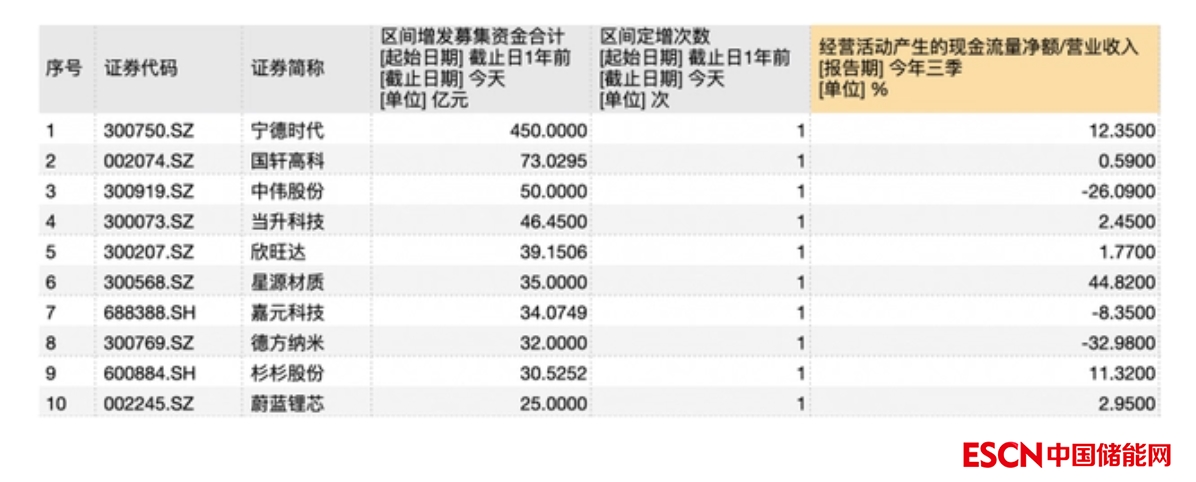 或許正是在業(yè)績(jī)的刺激下,鋰電企業(yè)加足馬力擴(kuò)張。一年前至今,共有16家企業(yè)增發(fā)募資,其中寧德時(shí)代以450億元的巨額募資位居榜首,國(guó)軒高科居第二。