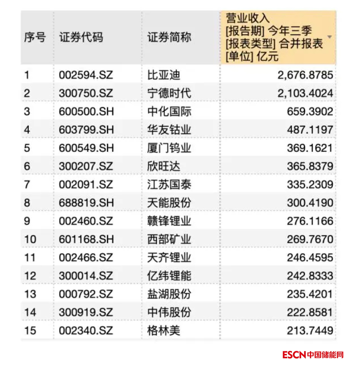 從營(yíng)業(yè)收入來(lái)看,比亞迪、寧德時(shí)代堪稱(chēng)“雙雄”,憑借前三季度2676.87億元和2103.40億元的營(yíng)業(yè)收入占據(jù)著榜單前兩名,且體量遠(yuǎn)遠(yuǎn)和其他公司拉開(kāi)差距。