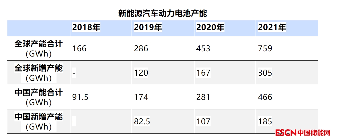 近幾年,在世界新能源汽車高增長拉動下,全球新能源汽車動力電池企業(yè)的產(chǎn)銷規(guī)模持續(xù)高增長,拉動產(chǎn)能擴(kuò)張相對較快。2018年全球新能源汽車動力電池主力企業(yè)產(chǎn)能達(dá)到166G瓦時,2021年達(dá)到759G瓦時,以年均70%的增速高增長。