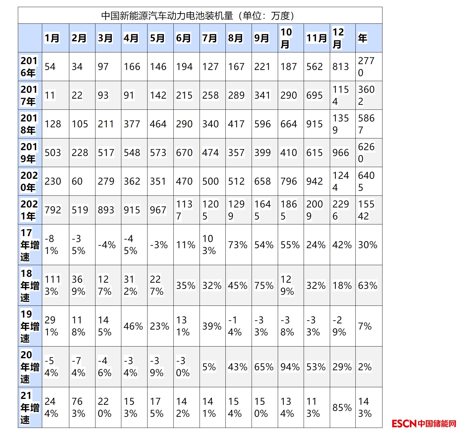 2021年中國國產(chǎn)動力電池裝機(jī)量15542度電,同比增長143%,達(dá)到近幾年的電池裝機(jī)量增速的最高增速水平。遠(yuǎn)超過歷史正常增速。