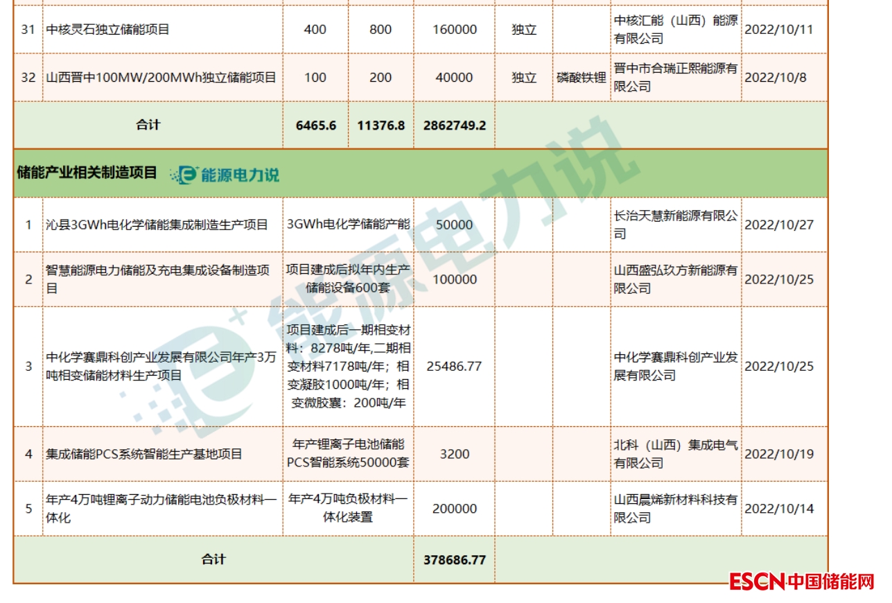 10月,山西省備案儲能項(xiàng)目37個(gè),其中儲能項(xiàng)目32個(gè),儲能產(chǎn)品制造基地項(xiàng)目5個(gè)。