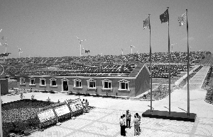 圖為已經(jīng)并網(wǎng)發(fā)電的寧夏太陽山的一處風力和光伏電站。