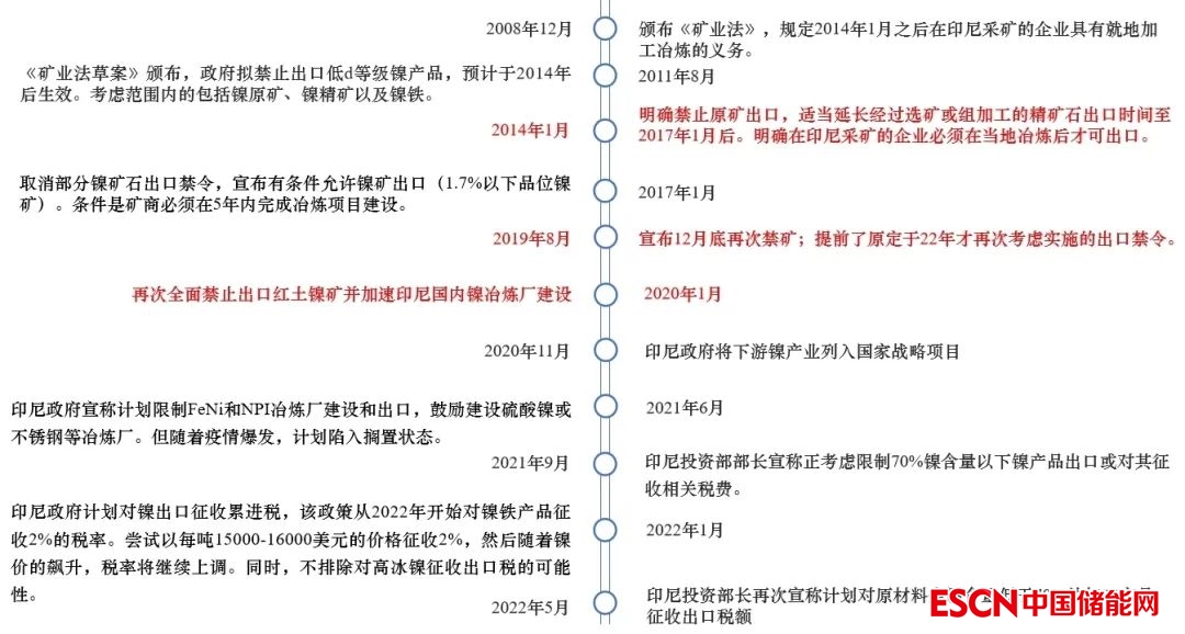 自2008年以來,印度尼西亞出臺了一系列鎳產(chǎn)業(yè)的相關政策,兩次發(fā)布政策禁止原礦出口,中國從印度尼西亞進口的原礦數(shù)量急劇減少,國內(nèi)在印度尼西亞布局冶煉產(chǎn)業(yè)的企業(yè)增多,中間品進口數(shù)量增加。2022年5月,印度尼西亞投資部長再次宣稱計劃對原材料金屬含量低于70%的加工商品征收出口稅額。同年8月19日,總統(tǒng)佐科?維多多稱,或將在今年對鎳征收出口稅。新能源汽車在全球范圍內(nèi)的產(chǎn)銷量持續(xù)增長,帶動著鋰、鎳、鈷金屬需求量的激增,作為鎳金屬的主要生產(chǎn)國和出口國,印度尼西亞雖受益于鎳價上漲,但總統(tǒng)仍希望本國在全球電動汽車供應鏈的地位可以進一步提升,能夠停止所有原料鎳的出口,延長本國產(chǎn)業(yè)鏈,提高產(chǎn)品的附加值。