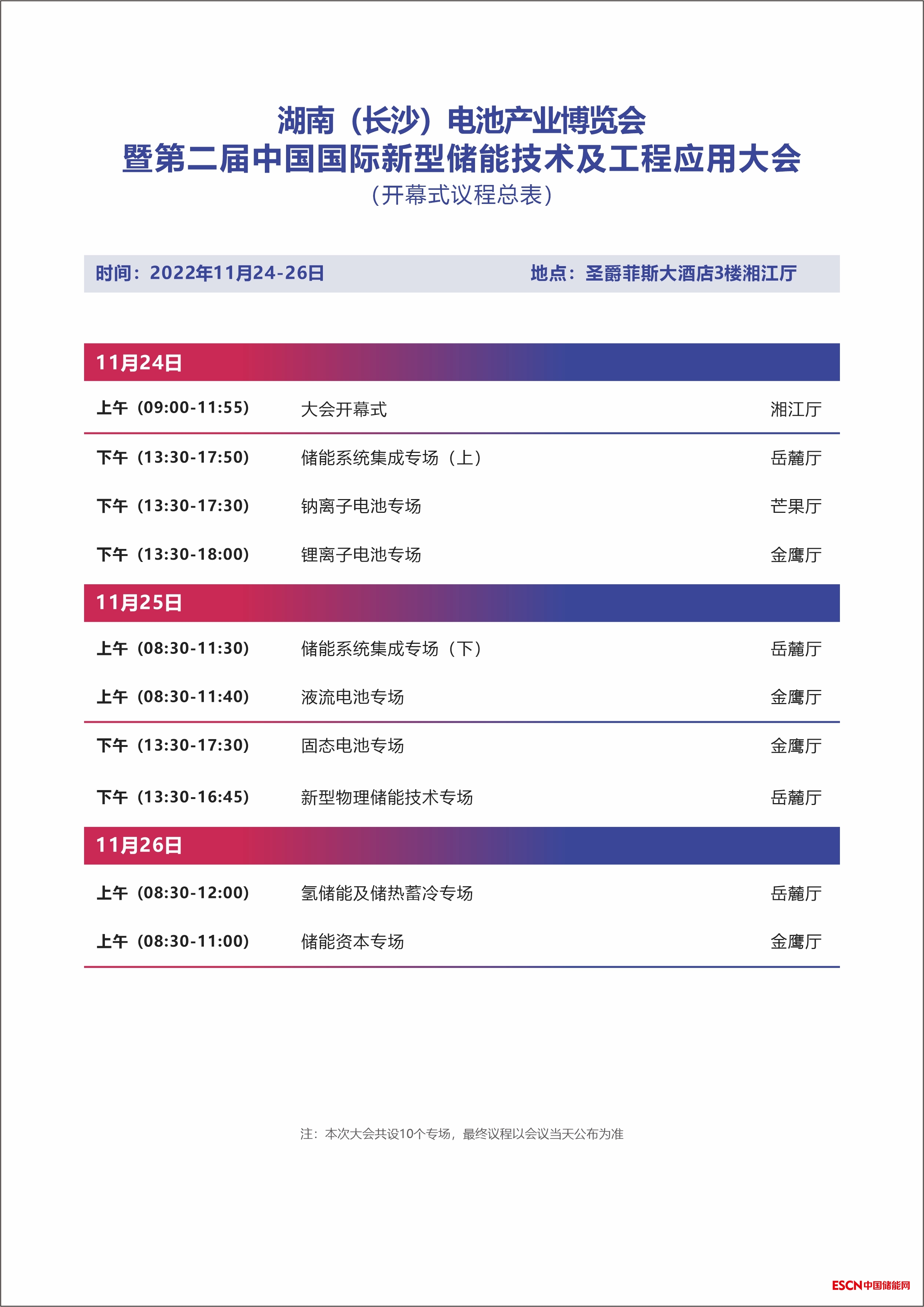 第二屆中國新型儲能技術(shù)及工程應(yīng)用大會將安排大會開幕式暨院士專家主題報(bào)告、儲能系統(tǒng)集成專場(上、下)、鋰離子電池專場、鈉離子電池專場、液流電池專場、新型物理儲能技術(shù)專場、固態(tài)電池專場、氫儲能及儲熱專場、儲能資本專場等10個(gè)專場論壇。為期三天的會議,主辦方將邀請100余家產(chǎn)學(xué)研機(jī)構(gòu)及上下游產(chǎn)業(yè)鏈企業(yè)聯(lián)合支持,100余位行業(yè)主管部門領(lǐng)導(dǎo)、院士、專家以及優(yōu)秀企業(yè)代表做主題分享。