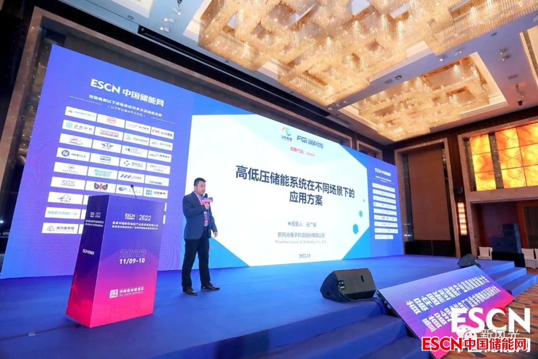 公司市場部產品總監(jiān)石廣保受邀做《高低壓儲能系統(tǒng)在不同場景下的應用方案》的專題報告,石總從風光電源側/電網側高低壓配儲、高壓應急電源、柴發(fā)儲能供電系統(tǒng)、工商業(yè)儲能等方面向參會的專家、學者給出了新風光方案。