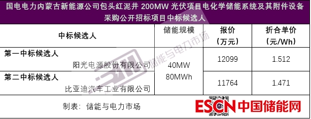 中國儲(chǔ)能網(wǎng)訊:11月17日,國電電力內(nèi)蒙古新能源公司包頭紅泥井200MW光伏項(xiàng)目電化學(xué)儲(chǔ)能系統(tǒng)及其附件設(shè)備采購公開招標(biāo)項(xiàng)目中標(biāo)候選人公示對(duì)外發(fā)布。陽光電源股份有限公司以總報(bào)價(jià)12099萬元,折合單價(jià)1.512元/Wh,成為第一中標(biāo)候選人。